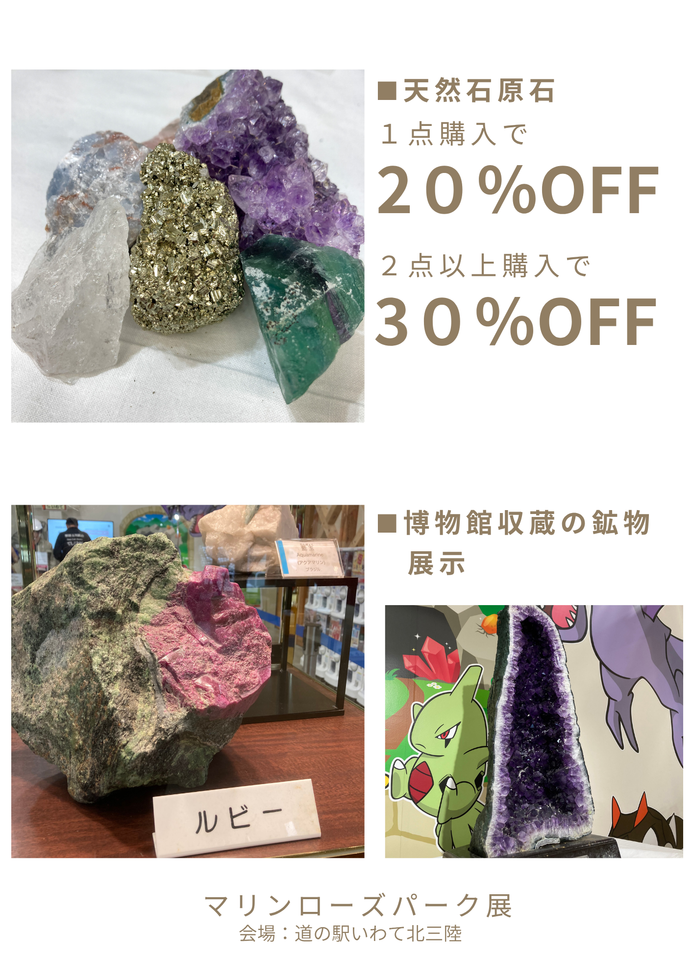 てしごと屋久慈店は野田村の特産品のマリンローズアクセサリーの他、天然石探しやパワーストーンガチャポンなどあります。